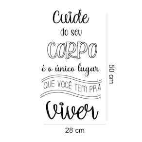 Adesivo de parede frase cuide do seu corpo Medida: 28 x 50 cm Atenção as medidas Os adesivos decorativos são produzidos com material de alta qualidade. As imagens anunciadas são ilustrativas