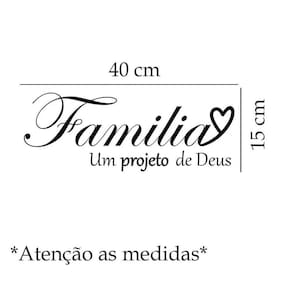 Adesivo de parede frase família é um projeto de deus Medida: 40 x 15 cm Atenção as medidas Os adesivos decorativos são produzidos com material de alta qualidade. As imagens anunciadas são ilustrativas Tamanho do adesivo O adesivo da foto parece grande Então atenção: O modelo que está na foto não se refere ao tamanho do adesivo anunciado. deixamos o adesivo grande para que você possa visualizar melhor o produto que está comprando Material Vinil adesivo. É só destacar e colar Nossos adesivos são específicos para superfícies lisas, por isso se adequam a paredes, vidros, madeiras e demais superfícies sem texturas. Importante lembrar de conferir que o local para aplicação está devidamente limpo, sem poeiras, gorduras ou demais resíduos. Todos os nossos produtos são enviados com manual de instruções e dicas para aplicação. As imagens anunciadas são ilustrativas Pode haver variações na cor de acordo com as configurações do seu monitor. Confira todas as informações como medidas e quantidade na descrição do produto. Marca: Lojinha Da Luc