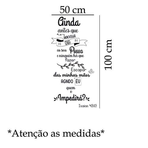 Adesivo de parede frase isaías 43:13 mod01 Medida: 50 x 100 cm Atenção as medidas Os adesivos decorativos são produzidos com material de alta qualidade. As imagens anunciadas são ilustrativas