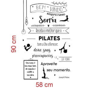 Adesivo de parede frase joseph pilates Medida: 58 x 90 cm As imagens anunciadas são ilustrativas Tamanho do adesivo O adesivo da foto parece grande