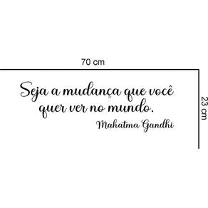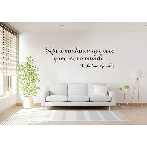 Adesivo de parede frase mahatma gandhi Medida: 70 x 23 cm As imagens anunciadas são ilustrativas Tamanho do adesivo O adesivo da foto parece grande Então atenção: O modelo que está na foto não se refere ao tamanho do adesivo anunciado. deixamos o adesivo grande para que você possa visualizar melhor o produto que está comprando Vantagens: - já vai recortado - fácil aplicação e sem sujeira, não precisa de cola. - acompanha manual impresso. - renovação do ambiente. É o fim das paredes brancas, sem vida Onde aplicar Em qualquer superfície lisa. Onde não aplicar Paredes úmidas, superfícies porosas, com relevo, com texturas, irregularidades ou com infiltrações. Local para aplicação: aplique onde sua imaginação mandar paredes, móveis, revestimentos, azulejos, tetos, janelas, portas, vitrines, vidraças, , carros, notebook, banheiro, geladeira e muito mais. Marca: Lojinha Da Luc Adesivos Ean: 8001250004932