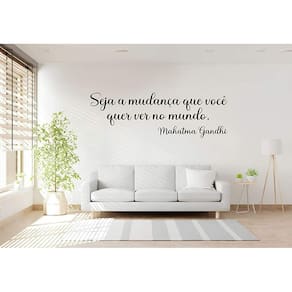 Adesivo de parede frase mahatma gandhi Medida: 70 x 23 cm As imagens anunciadas são ilustrativas Tamanho do adesivo O adesivo da foto parece grande Então atenção: O modelo que está na foto não se refere ao tamanho do adesivo anunciado. deixamos o adesivo grande para que você possa visualizar melhor o produto que está comprando Vantagens: - já vai recortado - fácil aplicação e sem sujeira, não precisa de cola. - acompanha manual impresso. - renovação do ambiente. É o fim das paredes brancas, sem vida Onde aplicar Em qualquer superfície lisa. Onde não aplicar Paredes úmidas, superfícies porosas, com relevo, com texturas, irregularidades ou com infiltrações. Local para aplicação: aplique onde sua imaginação mandar paredes, móveis, revestimentos, azulejos, tetos, janelas, portas, vitrines, vidraças, , carros, notebook, banheiro, geladeira e muito mais.