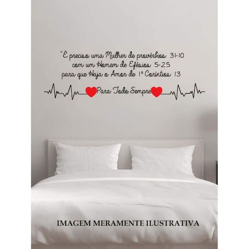 Adesivo de parede frase para todo sempre mod01 Medida: 110 x 33 cm As imagens anunciadas são ilustrativas Tamanho do adesivo O adesivo da foto parece grande Então atenção: O modelo que está na foto não se refere ao tamanho do adesivo anunciado. deixamos o adesivo grande para que você possa visualizar melhor o produto que está comprando Vantagens: - já vai recortado - fácil aplicação e sem sujeira, não precisa de cola. - acompanha manual impresso. - renovação do ambiente. É o fim das paredes brancas, sem vida Onde aplicar Em qualquer superfície lisa. Onde não aplicar Paredes úmidas, superfícies porosas, com relevo, com texturas, irregularidades ou com infiltrações. Local para aplicação: aplique onde sua imaginação mandar paredes, móveis, revestimentos, azulejos, tetos, janelas, portas, vitrines, vidraças, , carros, notebook, banheiro, geladeira e muito mais. Marca: Não Informado