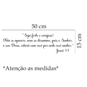 Adesivo de parede frase seja forte e corajoso mod02 Medida: 50 x 15 cm Atenção as medidas Os adesivos decorativos são produzidos com material de alta qualidade. As imagens anunciadas são ilustrativas
