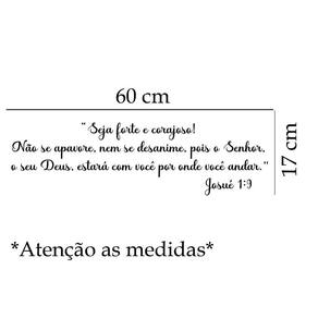Adesivo de parede frase seja forte e corajoso mod02 Medida: 60 x 17 cm Atenção as medidas Os adesivos decorativos são produzidos com material de alta qualidade. As imagens anunciadas são ilustrativas