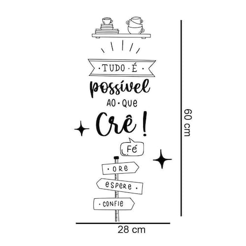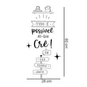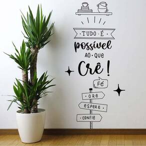 Adesivo de parede frase tudo é possível Atenção as medidas Medida: 28 x 60 cm Atenção as medidas Os adesivos decorativos são produzidos com material de alta qualidade. As imagens anunciadas são ilustrativas