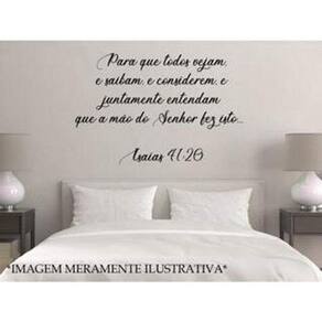 Adesivo de parede frase versículo isaias 41:20 mod01 Medida: 100 x 66 cm Atenção as medidas Os adesivos decorativos são produzidos com material de alta qualidade. As imagens anunciadas são ilustrativas