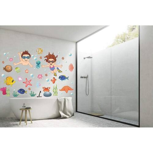 Adesivo de parede fundo do mar Medida: 55 x 36 cm As imagens anunciadas são ilustrativas Tamanho do adesivo O adesivo da foto parece grande Então atenção: O modelo que está na foto não se refere ao tamanho do adesivo anunciado. deixamos o adesivo grande para que você possa visualizar melhor o produto que está comprando