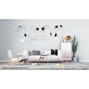 Adesivo de parede gato melhores amigos Medida: 120 x 37 cm As imagens anunciadas são ilustrativas Tamanho do adesivo O adesivo da foto parece grande