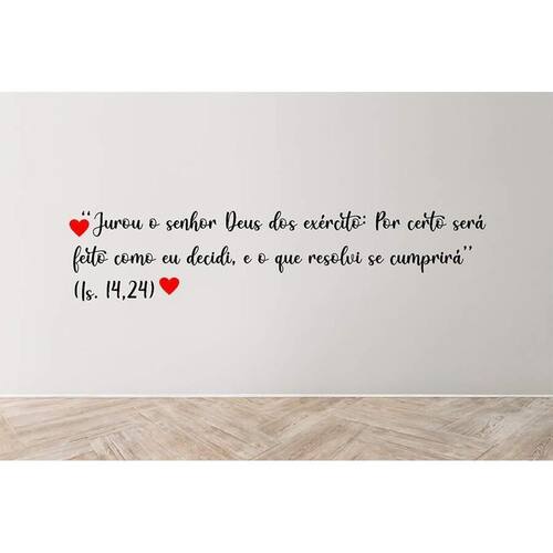 Adesivo de parede isaias 14:24 Medida: 100 x 21 cm As imagens anunciadas são ilustrativas Tamanho do adesivo O adesivo da foto parece grande