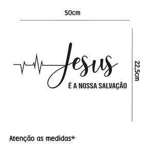 Adesivo de parede jesus é a salvação Medida: 70 x 31 cm As imagens anunciadas são ilustrativas Tamanho do adesivo O adesivo da foto parece grande