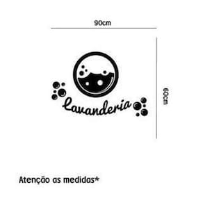 Adesivo de parede lavanderia Medida: 90 x 60 cm As imagens anunciadas são ilustrativas Tamanho do adesivo O adesivo da foto parece grande Então atenção: O modelo que está na foto não se refere ao tamanho do adesivo anunciado. deixamos o adesivo grande para que você possa visualizar melhor o produto que está comprando