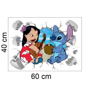 Adesivo de parede lilo e stitch tocando violão Medida: 60 x 40 cm As imagens anunciadas são ilustrativas Tamanho do adesivo O adesivo da foto parece grande