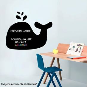 Adesivo de parede lousa baleia Medida: 80 x 65 cm As imagens anunciadas são ilustrativas Tamanho do adesivo O adesivo da foto parece grande