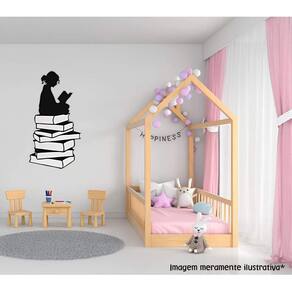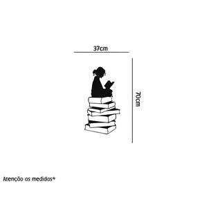 Adesivo de parede menina lendo livro Medida: 37 x 70 cm As imagens anunciadas são ilustrativas Tamanho do adesivo O adesivo da foto parece grande Então atenção: O modelo que está na foto não se refere ao tamanho do adesivo anunciado. deixamos o adesivo grande para que você possa visualizar melhor o produto que está comprando