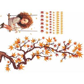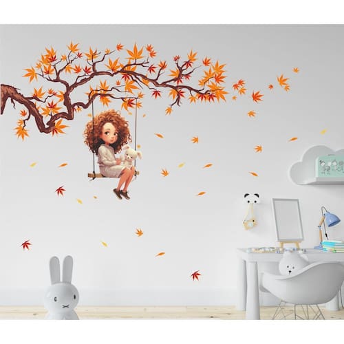 Adesivo de Parede Menina no Balanço e Folhagens de Outono Adesivo de Parede Menina no Balanço e Folhagens de Outono