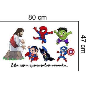 Adesivo de parede meu grande herói Medida: 80 x 47 cm As imagens anunciadas são ilustrativas Tamanho do adesivo O adesivo da foto parece grande