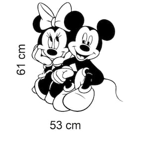 Adesivo de parede mickey e minnie mod08 Medida: 53 x 61 cm As imagens anunciadas são ilustrativas Tamanho do adesivo O adesivo da foto parece grande