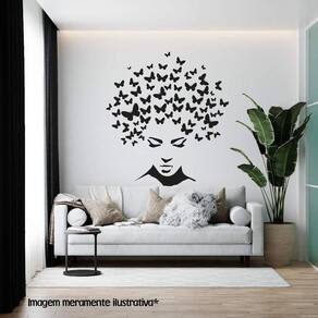 Adesivo de parede mulher e borboletas Medida: 54 x 60 cm As imagens anunciadas são ilustrativas Tamanho do adesivo O adesivo da foto parece grande Então atenção: O modelo que está na foto não se refere ao tamanho do adesivo anunciado. deixamos o adesivo grande para que você possa visualizar melhor o produto que está comprando