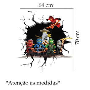 Adesivo de parede ninjago mod01 Medida: 64 x 70 cm As imagens anunciadas são ilustrativas Tamanho do adesivo O adesivo da foto parece grande