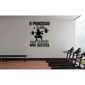 Adesivo de parede o processo é lento - academia Medida: 55 x 70 cm As imagens anunciadas são ilustrativas Tamanho do adesivo O adesivo da foto parece grande Então atenção: O modelo que está na foto não se refere ao tamanho do adesivo anunciado. deixamos o adesivo grande para que você possa visualizar melhor o produto que está comprando Vantagens: - já vai recortado - fácil aplicação e sem sujeira, não precisa de cola. - acompanha manual impresso. - renovação do ambiente. É o fim das paredes brancas, sem vida Onde aplicar Em qualquer superfície lisa. Onde não aplicar Paredes úmidas, superfícies porosas, com relevo, com texturas, irregularidades ou com infiltrações. Local para aplicação: aplique onde sua imaginação mandar paredes, móveis, revestimentos, azulejos, tetos, janelas, portas, vitrines, vidraças, , carros, notebook, banheiro, geladeira e muito mais. Marca: Não Informado