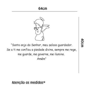 Adesivo de parede oração anjo da guarda Medida: 64 x 45 cm Atenção as medidas Os adesivos decorativos são produzidos com material de alta qualidade. As imagens anunciadas são ilustrativas