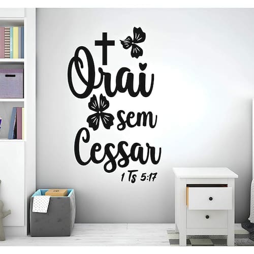 Adesivo de parede orai sem cessar Medida: 60 x 100 cm As imagens anunciadas são ilustrativas Tamanho do adesivo O adesivo da foto parece grande Então atenção: O modelo que está na foto não se refere ao tamanho do adesivo anunciado. deixamos o adesivo grande para que você possa visualizar melhor o produto que está comprando Vantagens: - já vai recortado - fácil aplicação e sem sujeira, não precisa de cola. - acompanha manual impresso. - renovação do ambiente. É o fim das paredes brancas, sem vida Onde aplicar Em qualquer superfície lisa. Onde não aplicar Paredes úmidas, superfícies porosas, com relevo, com texturas, irregularidades ou com infiltrações. Local para aplicação: aplique onde sua imaginação mandar paredes, móveis, revestimentos, azulejos, tetos, janelas, portas, vitrines, vidraças, , carros, notebook, banheiro, geladeira e muito mais.