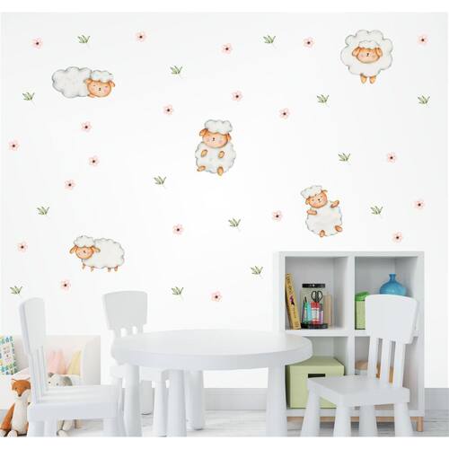 Adesivo de Parede Ovelhas Cute e Flores Adesivo de Parede Ovelhas Cute e Florais