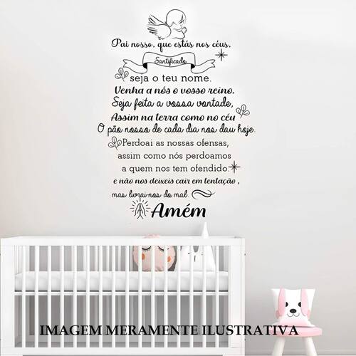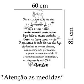 Adesivo de parede pai nosso mod01 Medida: 60 x 81 cm As imagens anunciadas são ilustrativas Tamanho do adesivo O adesivo da foto parece grande Então atenção: O modelo que está na foto não se refere ao tamanho do adesivo anunciado. deixamos o adesivo grande para que você possa visualizar melhor o produto que está comprando Vantagens: - já vai recortado - fácil aplicação e sem sujeira, não precisa de cola. - acompanha manual impresso. - renovação do ambiente. É o fim das paredes brancas, sem vida Onde aplicar Em qualquer superfície lisa. Onde não aplicar Paredes úmidas, superfícies porosas, com relevo, com texturas, irregularidades ou com infiltrações. Local para aplicação: aplique onde sua imaginação mandar paredes, móveis, revestimentos, azulejos, tetos, janelas, portas, vitrines, vidraças, , carros, notebook, banheiro, geladeira e muito mais. Marca: Lojinha Da Luc Adesivos Ean: 8001250005533