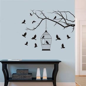 Adesivo de parede pássaro e gaiola Medida: 55 x 40 cm As imagens anunciadas são ilustrativas Tamanho do adesivo O adesivo da foto parece grande Então atenção: O modelo que está na foto não se refere ao tamanho do adesivo anunciado. deixamos o adesivo grande para que você possa visualizar melhor o produto que está comprando