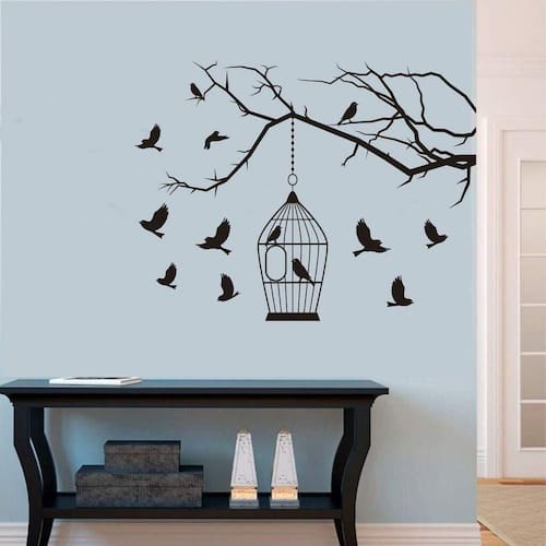 Adesivo de parede pássaro e gaiola Medida: 55 x 40 cm As imagens anunciadas são ilustrativas Tamanho do adesivo O adesivo da foto parece grande Então atenção: O modelo que está na foto não se refere ao tamanho do adesivo anunciado. deixamos o adesivo grande para que você possa visualizar melhor o produto que está comprando