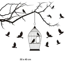Adesivo de parede pássaro e gaiola Medida: 55 x 40 cm As imagens anunciadas são ilustrativas Tamanho do adesivo O adesivo da foto parece grande Então atenção: O modelo que está na foto não se refere ao tamanho do adesivo anunciado. deixamos o adesivo grande para que você possa visualizar melhor o produto que está comprando
