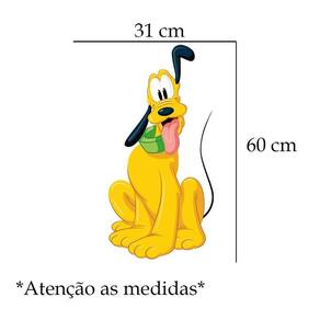 Adesivo de parede pluto mod01 Medida: 31 x 60 cm As imagens anunciadas são ilustrativas Tamanho do adesivo O adesivo da foto parece grande