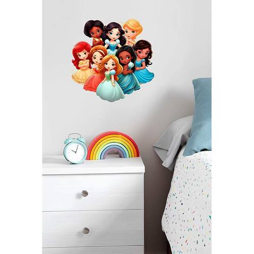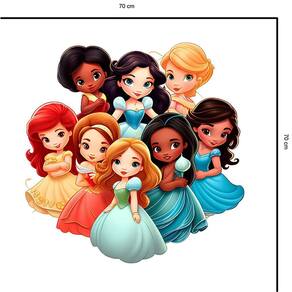 Adesivo de parede princesas mod02 Medida: 70 x 70 cm As imagens anunciadas são ilustrativas Tamanho do adesivo O adesivo da foto parece grande