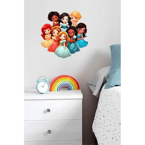 Adesivo de parede princesas mod02 Medida: 60 x 60 cm As imagens anunciadas são ilustrativas Tamanho do adesivo O adesivo da foto parece grande