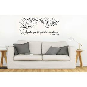 Adesivo de parede salmos 121:3 Medida: 80 x 36 cm As imagens anunciadas são ilustrativas Tamanho do adesivo O adesivo da foto parece grande Então atenção: O modelo que está na foto não se refere ao tamanho do adesivo anunciado. deixamos o adesivo grande para que você possa visualizar melhor o produto que está comprando Vantagens: - já vai recortado - fácil aplicação e sem sujeira, não precisa de cola. - acompanha manual impresso. - renovação do ambiente. É o fim das paredes brancas, sem vida Onde aplicar Em qualquer superfície lisa. Onde não aplicar Paredes úmidas, superfícies porosas, com relevo, com texturas, irregularidades ou com infiltrações. Local para aplicação: aplique onde sua imaginação mandar paredes, móveis, revestimentos, azulejos, tetos, janelas, portas, vitrines, vidraças, , carros, notebook, banheiro, geladeira e muito mais. Marca: Não Informado Ean: 8001250016263