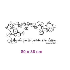 Adesivo de parede salmos 121:3 Medida: 80 x 36 cm As imagens anunciadas são ilustrativas Tamanho do adesivo O adesivo da foto parece grande Então atenção: O modelo que está na foto não se refere ao tamanho do adesivo anunciado. deixamos o adesivo grande para que você possa visualizar melhor o produto que está comprando Vantagens: - já vai recortado - fácil aplicação e sem sujeira, não precisa de cola. - acompanha manual impresso. - renovação do ambiente. É o fim das paredes brancas, sem vida Onde aplicar Em qualquer superfície lisa. Onde não aplicar Paredes úmidas, superfícies porosas, com relevo, com texturas, irregularidades ou com infiltrações. Local para aplicação: aplique onde sua imaginação mandar paredes, móveis, revestimentos, azulejos, tetos, janelas, portas, vitrines, vidraças, , carros, notebook, banheiro, geladeira e muito mais. Marca: Não Informado Ean: 8001250016263