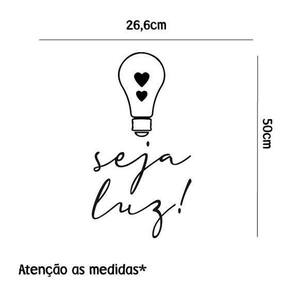 Adesivo de parede seja luz Seja luz: 26 x 50 cm Atenção as medidas Os adesivos decorativos são produzidos com material de alta qualidade. As imagens anunciadas são ilustrativas