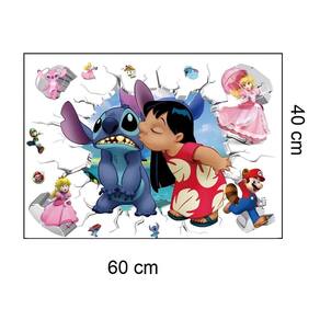 Adesivo de parede stitch e super mario Medida: 60 x 40 cm As imagens anunciadas são ilustrativas Tamanho do adesivo O adesivo da foto parece grande