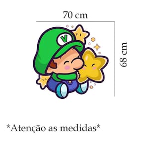 Adesivo de parede super mario baby mod01 Medida: 70 x 68 cm As imagens anunciadas são ilustrativas Tamanho do adesivo O adesivo da foto parece grande Então atenção: O modelo que está na foto não se refere ao tamanho do adesivo anunciado. deixamos o adesivo grande para que você possa visualizar melhor o produto que está comprando Vantagens: - já vai recortado - fácil aplicação e sem sujeira, não precisa de cola. - acompanha manual impresso. - renovação do ambiente. É o fim das paredes brancas, sem vida Onde aplicar Em qualquer superfície lisa. Onde não aplicar Paredes úmidas, superfícies porosas, com relevo, com texturas, irregularidades ou com infiltrações. Local para aplicação: aplique onde sua imaginação mandar paredes, móveis, revestimentos, azulejos, tetos, janelas, portas, vitrines, vidraças, , carros, notebook, banheiro, geladeira e muito mais. Marca: Lojinha Da Luc Adesivos Ean: 8001250006325