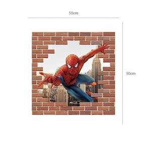 Adesivo de parede tijolo falso homem aranha Medida: 50 x 50 cm As imagens anunciadas são ilustrativas Tamanho do adesivo O adesivo da foto parece grande