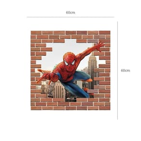 Adesivo de parede tijolo falso homem aranha Medida: 60 x 60 cm As imagens anunciadas são ilustrativas Tamanho do adesivo O adesivo da foto parece grande