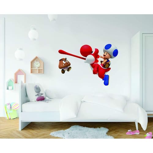 Adesivo de parede toad e yoshi vermelho mod01 Medida: 100 x 70 cm As imagens anunciadas são ilustrativas Tamanho do adesivo O adesivo da foto parece grande