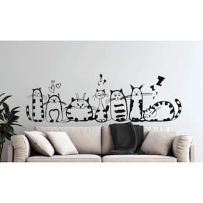 Adesivo de parede trilha sonora dos gatos Medida: 100 x 30 cm As imagens anunciadas são ilustrativas Tamanho do adesivo O adesivo da foto parece grande