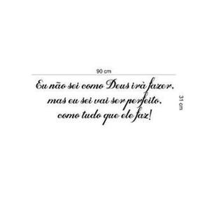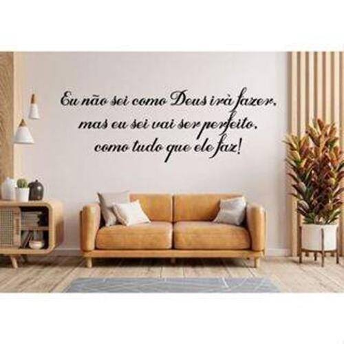 Adesivo de parede tudo que deus faz é perfeito Medida: 90 x 31 cm As imagens anunciadas são ilustrativas Tamanho do adesivo O adesivo da foto parece grande Então atenção: O modelo que está na foto não se refere ao tamanho do adesivo anunciado. deixamos o adesivo grande para que você possa visualizar melhor o produto que está comprando Vantagens: - já vai recortado - fácil aplicação e sem sujeira, não precisa de cola. - acompanha manual impresso. - renovação do ambiente. É o fim das paredes brancas, sem vida Onde aplicar Em qualquer superfície lisa. Onde não aplicar Paredes úmidas, superfícies porosas, com relevo, com texturas, irregularidades ou com infiltrações. Local para aplicação: aplique onde sua imaginação mandar paredes, móveis, revestimentos, azulejos, tetos, janelas, Portas, vitrines, vidraças, , carros, notebook, banheiro, geladeira e muito mais. Marca: Não Informado