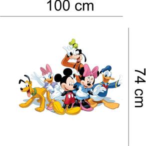 Adesivo de parede turma do mickey Medida: 100 x 74 cm As imagens anunciadas são ilustrativas Tamanho do adesivo O adesivo da foto parece grande Então atenção: O modelo que está na foto não se refere ao tamanho do adesivo anunciado. deixamos o adesivo grande para que você possa visualizar melhor o produto que está comprando