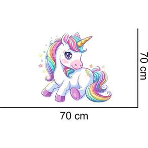 Adesivo de parede unicornio mod03 Medida: 70 x 70 cm As imagens anunciadas são ilustrativas Tamanho do adesivo O adesivo da foto parece grande