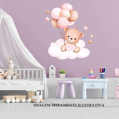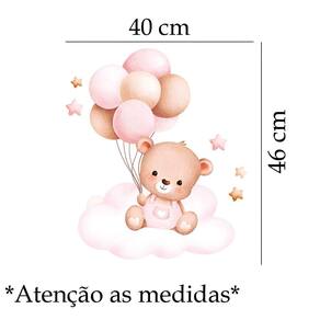 Adesivo de parede ursinha na nuvem Medida: 40 x 46 cm As imagens anunciadas são ilustrativas Tamanho do adesivo O adesivo da foto parece grande
