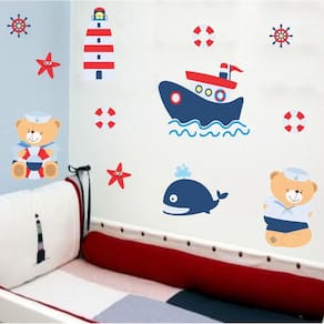 O adesivo com o tema Urso Marinheiro é uma escolha clássica e acolhedora para quartos de bebê ou crianças. Ele combina a ternura e a segurança do urso de pelúcia com a temática náutica (listras, âncoras, barcos), criando um ambiente de aventura, ordem e serenidade.