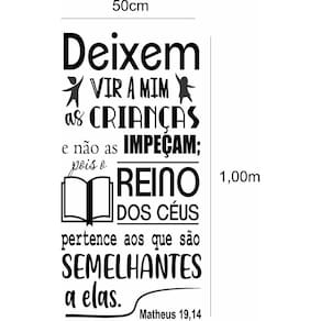 Adesivo de Parede Versículo Bíblico Matheus 14 - Frases Os Adesivos de Parede da Colakoala são ideais para decorar o Berçário ou quartinho do seu bebê, a sala de estar, a cozinha ou cantinho do café, Também cai muito bem no Espaço Kids, além de ser muito fácil de instalar. Essa é uma compra que você não irá se arrepender Adesivo de Parede Versículo Bíblico Matheus 14 - Frases Medida: Contém 01 Adesivo Medindo 1,00 x 47cm Adesivo de Vinil auto-colante com recorte sem fundos e sem bordas Garantia de 3 meses e durabilidade de 5 anos para uso interno e 2 anos para uso externo Nossos adesivos são de fácil instalação, não havendo a necessidade de experiência ou habilidades especiais É só destacar e colar. Acompanha Manual de instalação Sinta o prazer de fazer você mesmo de forma profissional e com toque único e pessoal. Deixe seu cantinho único como você. Seja Bem vindo/a e boas compras